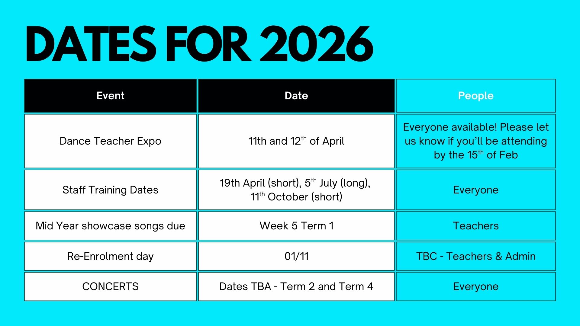 Please request and wait for clearance before starting in classes! This is to assure no double ups and that it hasn't been done by the same age recently - and also to check for age appropriateness! Super important!!